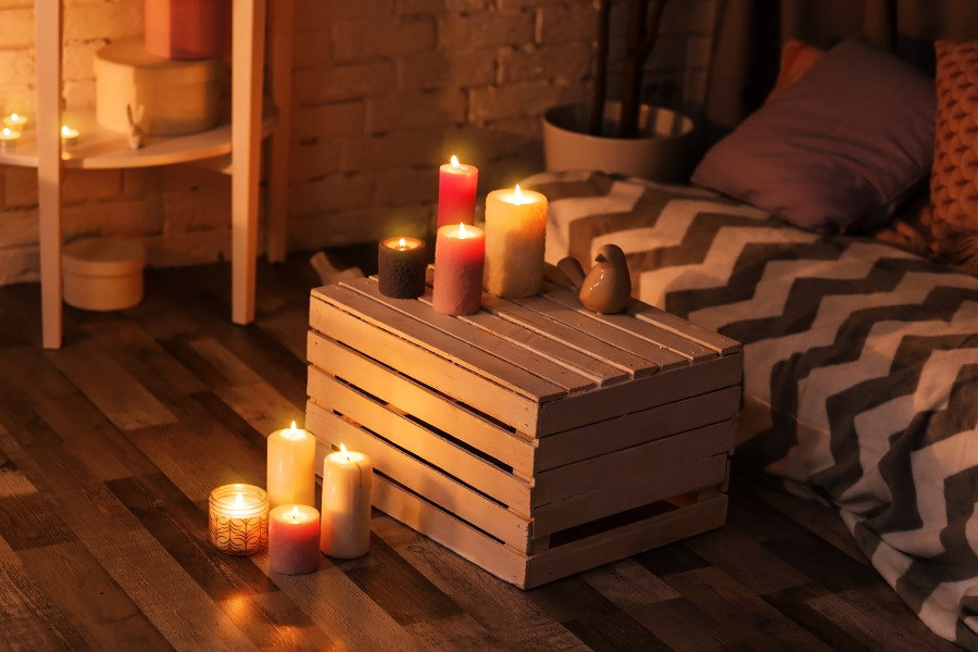 明るすぎる光は頭を起こしてしまうので、間接照明やキャンドルなどの優しい光がおすすめです。